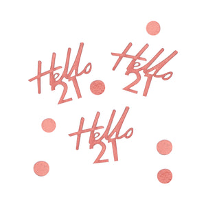 Say hello to twenty one with this fabulous 'Hello 21' Rose Gold Birthday Confetti, it's the finishing touch to complete your 21st birthday celebrations! The rose gold metallic foil will shimmer and shine adding real sparkle to your event. Match with other rose gold party decorations to complete your 'Hello 21' theme.