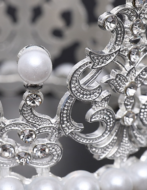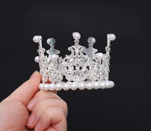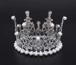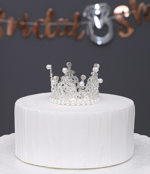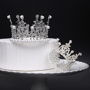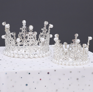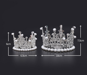This splendid crown is decorated with artificial pearls and cubic stones on a metal crown that can be used as a decorative accessory for bridal showers, birthdays or photoshoots! You can use it on a cake or wear it on your head by inserting a thread pin into the two holes in the crown. This elegant and shiny metal crown is wear-resistant, reusable and durable.