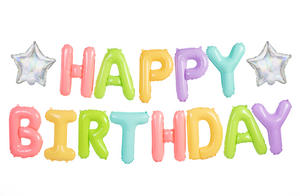 Nothing says happy birthday like these Neon Pastel Happy Birthday Balloons! These letter balloons feature bright pastel yellow, light pink, light green, mint, and lilac, with 2 iridescent stars. Tape these rainbow-colored balloons to the wall or use them as a backdrop for a DIY photo booth.