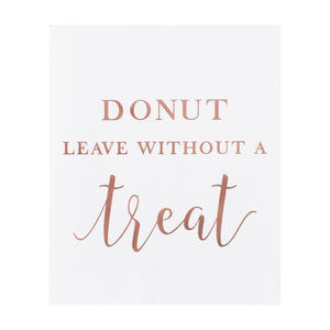 A perfect addition to your sweet table is this gorgeous 'Donut Leave Without a Treat' Favor Bags. Your guests will find the tasty treats hard to resist! These bags come in an elegant white with rose gold text which is sure to give an extra sparkle to the big day.