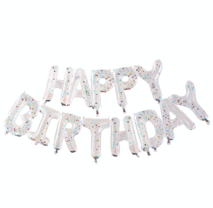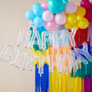Add the finishing touch to your party with this gorgeously colorful Rainbow Confetti filled Happy Birthday Balloon Bunting! This clear foiled birthday balloons are easy to inflate using the straw provided.