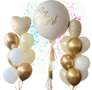 Make a big impression and surprise your loved ones with this Neutral Color Giant Gender Reveal with Gold 'Boy or Girl' Balloon. These perfectly round balloons are perfect for baby showers and gender reveals.