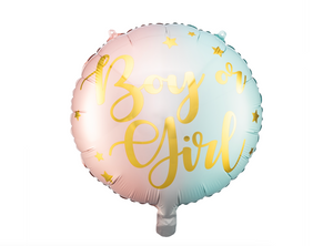 Build up the excitement as you reveal the gender of your baby by decorating your party with this Boy or Girl Gender Reveal Balloon! This foil balloon features a split design, with one half being pastel pink and the other half being pastel blue. In the middle of this party balloon, there's a "Boy Or Girl" headline in a gold script that keeps your guests guessing until the big reveal!