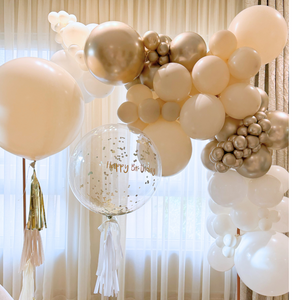Spread some cheer with this eye-catching balloon garland. A great way to celebrate your occasions, this piece can be installed on a wall, door entrance or tree!. Perfect for photos and a giant balloon for your party.