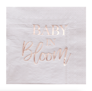 These elegant Rose Gold Foiled 'Baby in Bloom' Napkins are perfect for all baby showers! Use these gorgeous napkins alongside the 'Baby in Bloom' Floral Plates to serve tasty treats to your guests.