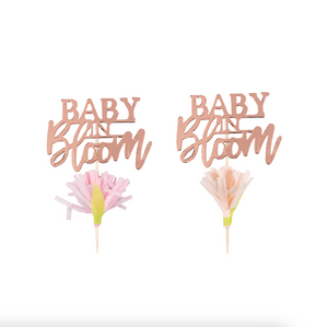 It's all in the finishing touches! Add these adorable Rose Gold Toppers into delicious fairy cakes and cupcakes - an easy and effective way to create beautiful cakes. The gorgeous 'Baby in Bloom' Cupcake Toppers will be loved by all, watch as they become totally irresistible! Each topper has 'Baby in Bloom' in adorable scripted writing. With a pretty floral print and a tissue flower at the bottom, they'll be the prettiest baby shower cake decorations ever!