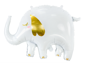 Add some fun to your baby shower or birthday party with this cute White Elephant Balloon. This foil balloon shaped like an elephant is a pale gray color with shiny gold accents.