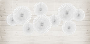 This classic white tissue paper fan looks great on its own or combined with other fans to create a tiered backdrop. Hang along a wall, banister, table, from the ceiling, or create a retail window display using these small party fans. Perfect for graduations, New Year's or seasonal holiday decor. White is great as a central or accent color and is the perfect way to highlight the other colors in your decoration scheme.
