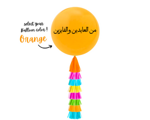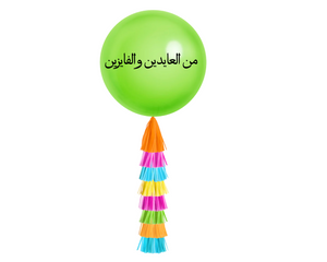 Make a big impression with your balloon decor with this Rainbow Colors Confetti Balloon and Eid Message "من العايدين والفايزين" and an added gold tassel to make your balloon extra special.