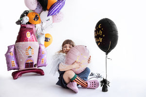 Bring some magic to your next Halloween party with this Pink Hocus Pocus Halloween Balloon! Featuring spooky gold details, this balloon would make the perfect witch-themed Halloween party decoration.