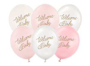 Soft, sweet, and ready to celebrate the littlest arrival. This calming balloon mix features pastel shades of blush pink, baby pink, off-white with a touch of metallic white shine. Each balloon is printed on both sides with a darling "Welcome Baby" design, perfect for baby showers, gender reveals, or first photoshoots.