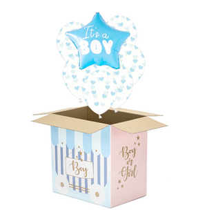 You can have the box delivered filled with helium inflated balloons with 'its a Boy' or 'its a Girl', select desired option.