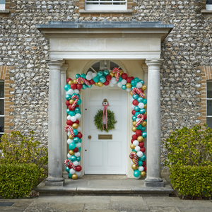Create a fab-yule-ous door display to wow your guests with this Novelty Candy Cane Christmas Door Balloon Arch Kit.