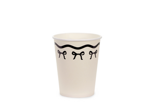 Add a chic touch to your celebration with these cream-colored party cups, adorned with elegant black bows. Perfect for birthdays, themed parties, or any stylish gathering.