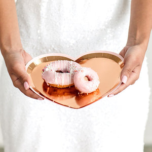 These glossy Rose Gold Plates in Heart Shape are perfect for bridal showers, bachelorette parties or Valentine!