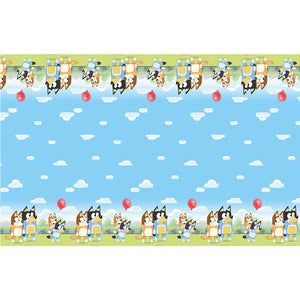Deck out your party tables with the Bluey Plastic Table Cover. Features Bandit, Bingo, Bluey, and Chili. A great way to protect your table from spills and decorate at the same time. Ideal for covering buffet tables, dinner tables, gift tables.