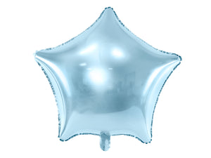 Add some flair to your celebration with this Sky Blue Star Foil Balloon. The balloon in the shape of a star is made from blue satin foil. Use the star balloon on its own or mixed with other foil or latex balloons to create a party display or backdrop.