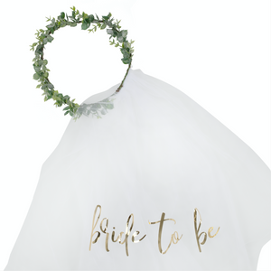 Ensure the beautiful Bride-to-be celebrates in style with this stunning Eucalyptus Crown with Veil. The crown has a lovely white veil with Bride to Be gold foiling design which is sure to be loved by everyone!