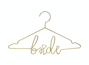 This cute Gold Hanger that spells 'Bride' is perfect for the beautiful bride-to-be on her special day!