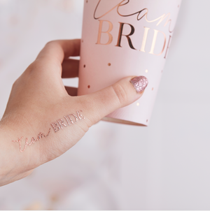 Celebrate in style with these stylish Team Bride temporary tattoos. Have fun with the beautiful bride-to-be and loved ones in Team Bride by applying the gorgeous rose gold temporary tattoos!
