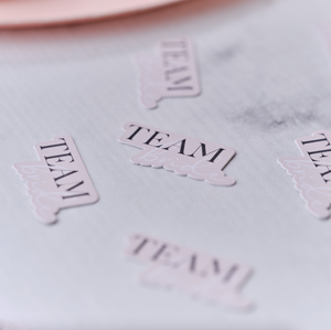 Sprinkle this pink and black Team Bride confetti to finish your hen party table setting! This hen party confetti is perfect to sprinkle between the Team Bride cups, straws, napkins and plates for a stylish hen party tableware set up.