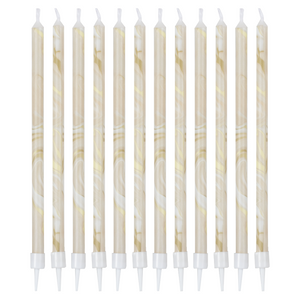 Nude and Champagne Gold Tall Marble Birthday Cake Candles