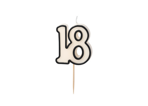 Celebrate the big 1-8 in bold style with this black and white number candle. Perfect for topping cakes or desserts and adding a sleek touch to your celebration.