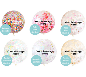 Select your confetti color mix and add your Custom Text Message at checkout.