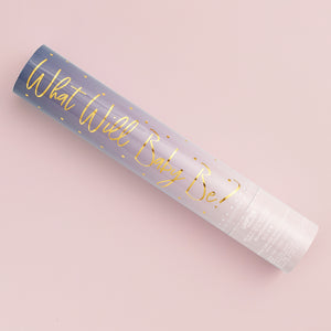 The packaging is gender neutral so family and friends will not know what color will come cascading out the cannon. There is a pink sticker on the cannon to identify the pink confetti inside. Remove the sticker before your guests arrive to keep the gender a mystery!