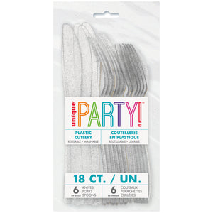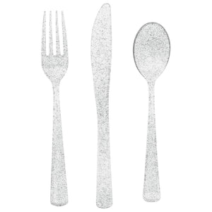 Set your table with a touch of sparkle using this Silver Glitter Assorted Cutlery Set, perfect for creating an elevated and festive party setting. Featuring a shimmering silver glitter finish, this cutlery adds instant glamour while remaining practical and easy to use. Ideal for celebrations where style meets convenience. Perfect for birthdays, New Year’s Eve and any occasion that calls for a little extra shine.