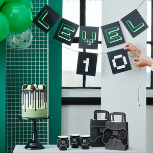 Celebrate another year older with this customizable Gamer Themed Bunting– the ultimate party accessory! This bunting comes with all numbers so you can customize it for how old your little gamer is! Pair this party decoration with matching balloons, bunting and much more! Are you up for the challenge? Game on!