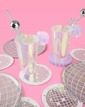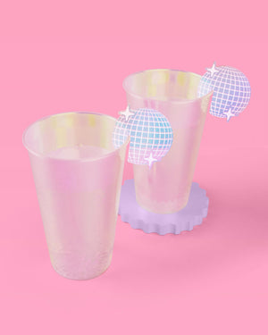 Let’s boogie! Keep the party going and your drinks in check with these durable acrylic drink markers, featuring an iridescent finish and white disco ball print on one side.