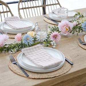 Finish your table with this gorgeous flower garland. Simply weave these spring flowers through your table to create a table runner or hang above the mantelpiece for a sweet spring display.