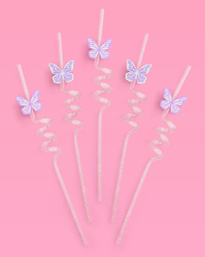 Spread your wings! Sip in style with these silver glitter twirly straws, featuring a removable acrylic butterfly charm for the ultimate whimsical touch. Perfect for bachelorettes, birthdays, work parties—or any party party.