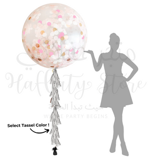 Make a big impression with your balloon decor with this Rose Pink (with Pink, Blush & Rose Gold) Confetti Balloon. These perfectly round balloons are ideal for many occasions. Add a length of gorgeous fringe garland tail to make your balloon extra special.