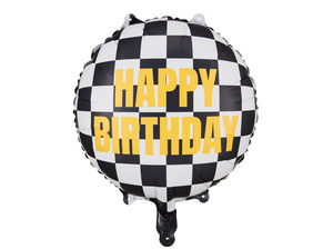 Rev up your birthday celebrations with this Checkered Flag Happy Birthday Foil Balloon! Perfect for car enthusiasts or race car fans, this balloon will add a fun and playful touch to any birthday party.