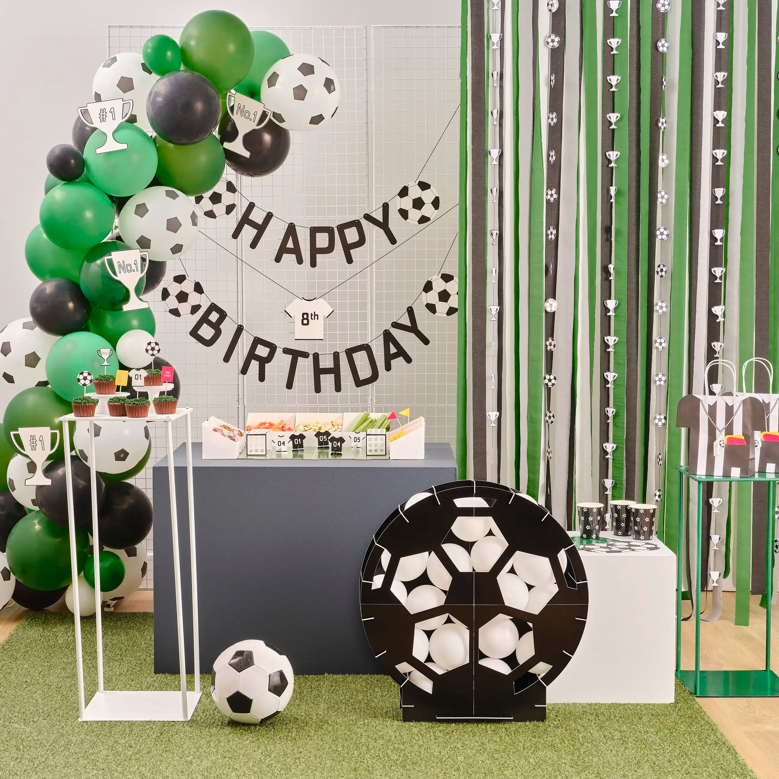 Pack contains x3 Football and x2 Trophy black and white balloon tails, each at 1 metre long.