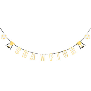 Hang up this shiny gold Football Garland to set the party scene! This shiny gold garland comes with trophy shapes and a birthday message trimmed in gold foil! Dangle it up across the party venue to create that awesome football feature!