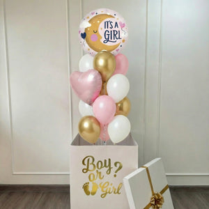 Surprise your loved ones with this gorgeous Gender Reveal Balloons Box! Filled up with pink or blue balloons to surprise your guests!