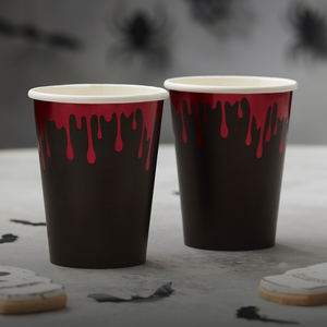 Decorate your spine-chilling Halloween party with these fun black and red Blood Drip Halloween Cups - ideal for making your party table come to life!