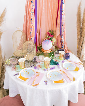 This Fortune Teller Ball Plate can see right into your future and your future festivities. It's embellished with gold foil and blue watercolor!