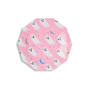 Oh hey, boo! Featuring holographic silver foil and neon coral, these Halloween Ghost Plates are seriously spooky!