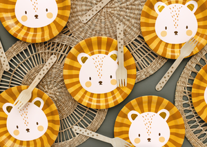 Let all the little critters feast on these Leo the Lion Dessert Plates at your safari party. This plate resembles the face of a friendly lion with gold foil accents and a striped border. Set these lion plates down at each place setting or stack them up on your dessert table so guests can help themselves to sweet treats. Create a jungle scene for all the party animals at your child's safari birthday party with these convenient, disposable plates.