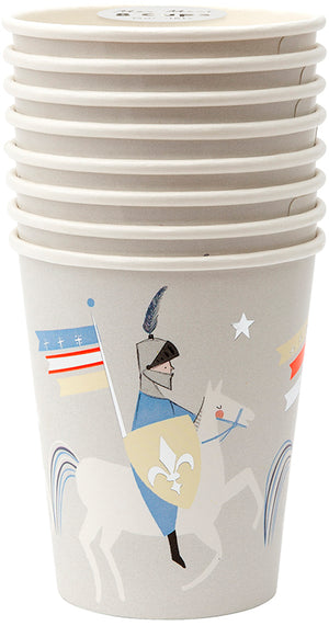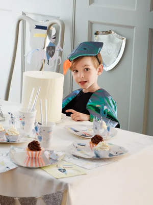 This set of Dragon Knights Party Cups by Meri Meri make a perfect addition to the Knightly Table! Thirsty knights and maidens will love to drink out of these beautifully illustrated cups. These cups feature a brave knight on steeds ready to defend the castle from fiery dragons. Ideal for juice, water, fizzy pop, or even as a way to carry some treats from the medieval sweetie bar!