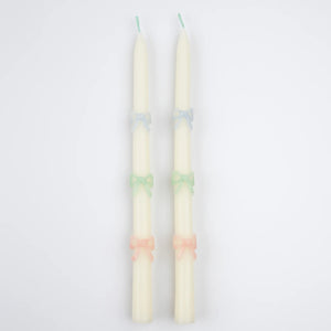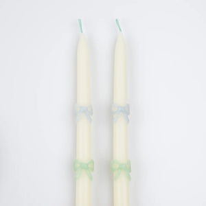 These tapered candles by Meri Meri, with on-trend bows, have a special surprise detail - mint green wicks! A wonderful hostess gift, or use to decorate the table or mantel at a party where soft pastel colors will look just perfect, like a baby or bridal shower.