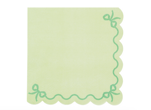 These stylish green paper napkins are finished with a delicate ruffle and feature a cute ribbon with a bow print. Perfect for adding a touch of elegance to your occasion!