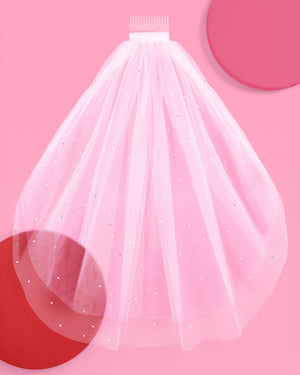 For That Girl—but make it That Bride. This white rhinestone veil is the ultimate bridal statement. Chic, effortless, and secured with a plastic comb, it’s made for the bride who has it together (or at least looks like she does).