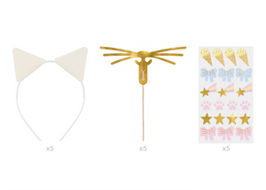 This playful set of headbands are designed as cat ears, accompanied by mustaches on sticks for cute photo opportunities. Perfect for parties and fun gatherings!