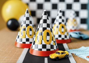 Rev up the excitement at your racing party with Checkered Flag Go! Race Car Party Hats! These cone-shaped party hats are the perfect accessory to ignite the racing spirit in your little speedsters. Get ready for a checkered flag finish at a race car birthday party, where every little racer can proudly sport their party hat and enjoy the thrill of the track!