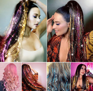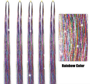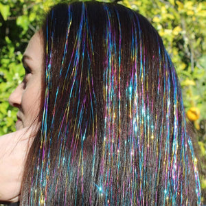 Add a pop of color and shine to your hair with this rainbow sparkle hair tinsel! Featuring strands of heat-resistant tinsel, this set comes with everything you need to create a fun, glittering look for any occasion. Perfect for parties, festivals, birthdays, and daily styling, this hair tinsel lets you switch up your look instantly—no dye required!